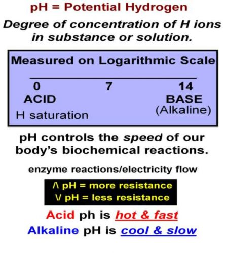Our body pH at various levels of our body’s fluid organization is very important because pH controls the speed of our body’s biochemical reactions. It does this by controlling the speed of enzyme activity as well as the speed that electricity moves through our body.