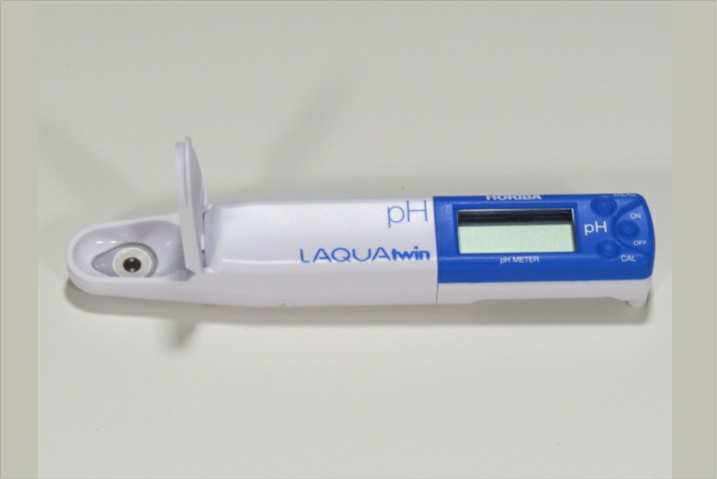 Here is a digital pH meter. Just a few drops of urine or saliva is placed on the tip and the pH is given in the digital readout.