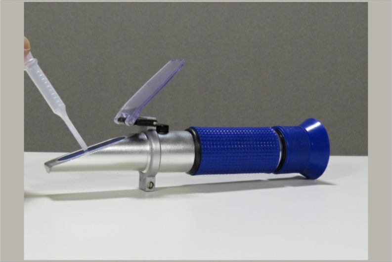 This instrument is called a refractometer. When measuring fluids it gives us a way to measure the specific gravity of the fluid or the “weight” of all the complex elements that are within it.