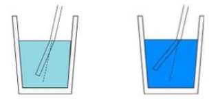 Let’s say you place water in a cup. When a pencil is dipped into the water, the tip appears bent. Now put concentrated sugar water into another cup and try the same thing. The tip of the pencil should appear even more bent. This is the phenomenon of light refraction.